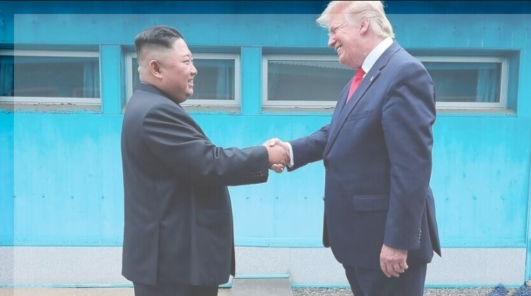 في الثلاثين من يونيو 2019، التقى الرئيس الأمريكي ترامب وزعيم كوريا الشمالية على خط الهدنة العسكري الذي يقسم شبه الجزيرة الكورية، حيث اقترب ترامب من الحدود، وخرج كيم جونغ أون لاستقباله. تصافحا، ثم عبر ترامب إلى الجانب الكوري الشمالي حيث التقط صورة مع كيم جونغ أون. بعد ذلك، عبر زعيم كوريا الشمالية مع الرئيس الأمريكي إلى الجانب الجنوبي، حيث استقبلهما مون جيه إن زعيم كوريا الجنوبية آنذاك. ثم توجه الثلاثة إلى “بيت السلام” في نقطة المفاوضات بانمونجوم. وجرى اللقاء بعيدا عن الإعلام.