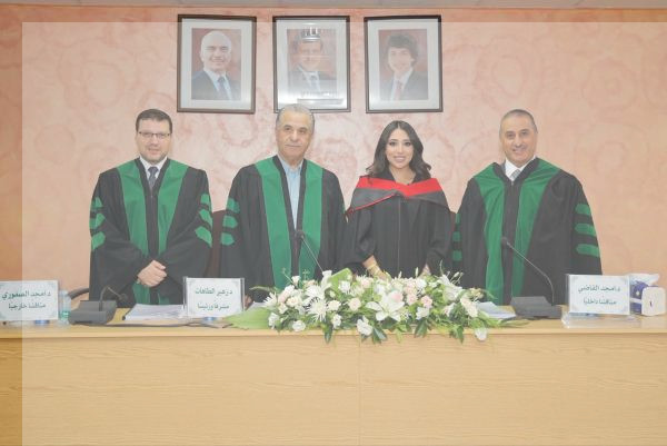 وتألفت لجنة المناقشة من الدكتور زهير الطاهات، مشرفًا ورئيسًا، والدكتور أمجد القاضي مناقشًا داخليًا، والدكتور أمجد الصفوري من جامعة الزرقاء مناقشًا خارجيًا.