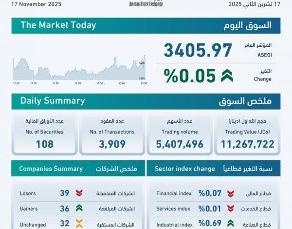بورصة عمان تغلق تداولاتها على ارتفاع