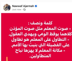 -صوت المعلم مثل صوت المؤذن؛ كلاهما يوقظ الوعي ويهدي العقول.