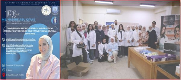 وتطرقت أبو قياص خلال الجلسة إلى أقسام تطوير الأعمال والأدوار الوظيفية المرتبطة بها، كما شرحت أسباب ملاءمة خريجي الصيدلة للعمل في هذا المجال، مستعرضة حالة واقعية من سوق العمل تسلّط الضوء على طبيعة المهام والفرص المتاحة. وقد وفّرت الجلسة للطلبة فهمًا أعمق للخيارات المهنية الواعدة خارج نطاق العمل الدوائي التقليدي، إضافة إلى توضيح المهارات المطلوبة للنجاح في هذا التخصص.