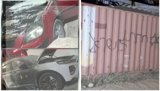 وأفادت مصادر أمنية، بأن عددا من المستوطنين تسللوا إلى البلدة، وأحرقوا مركبتين تعودان للمواطن عبد العزيز احمد عيسى، وخطوا شعارات عنصرية.