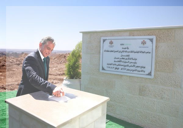 وضع رئيس الوزراء الدكتور جعفر حسان، اليوم الأحد، حجر الأساس لمستشفى مأدبا الجديد إيذاناً ببدء العمل على إنشائه وفق أعلى المواصفات، لينجز بعد 3 سنوات، كأول مستشفى حكومي ينفذ بالشراكة مع القطاع الخاص؛ ليخدم المواطنين في محافظة مأدبا والمناطق المجاورة لها.