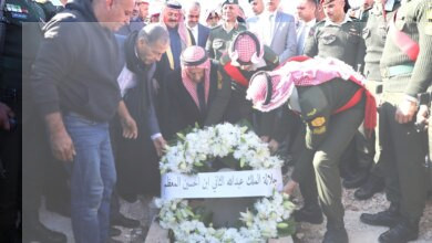 *ففي منطقة المدينة الرياضية،* نقل العيسوي خلال زيارته بيت عزاء المرحوم مازن محمد منور الحديد، تعازي ومواساة جلالة الملك وسمو ولي العهد، الى ذوي الفقيد وعشيرة الحديد وعموم عشائر البلقاوية، سائلا المولى عز وجل ان يتغمده بواسع رحمته.