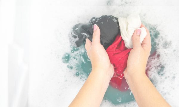 الشطف بالماء البارد: اقلبي قطعة الملابس من الداخل وضعي مكان البقعة تحت ماء بارد جارٍ، بحيث يتم دفع البقعة إلى الخارج بدلًا من تثبيتها داخل الألياف. هذه الخطوة ضرورية ويجب تنفيذها بأسرع وقت ممكن.
